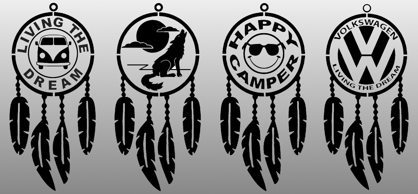 Four different designs, each with a Volkswagen or general camper van theme . The Dreamcatchers are cut from Ritrama & DeTape matt opaque vinyl with a strong acrylic adhesive. They measure 42cm tall by 20cm wide and are weatherproof for 5 years minimum. |